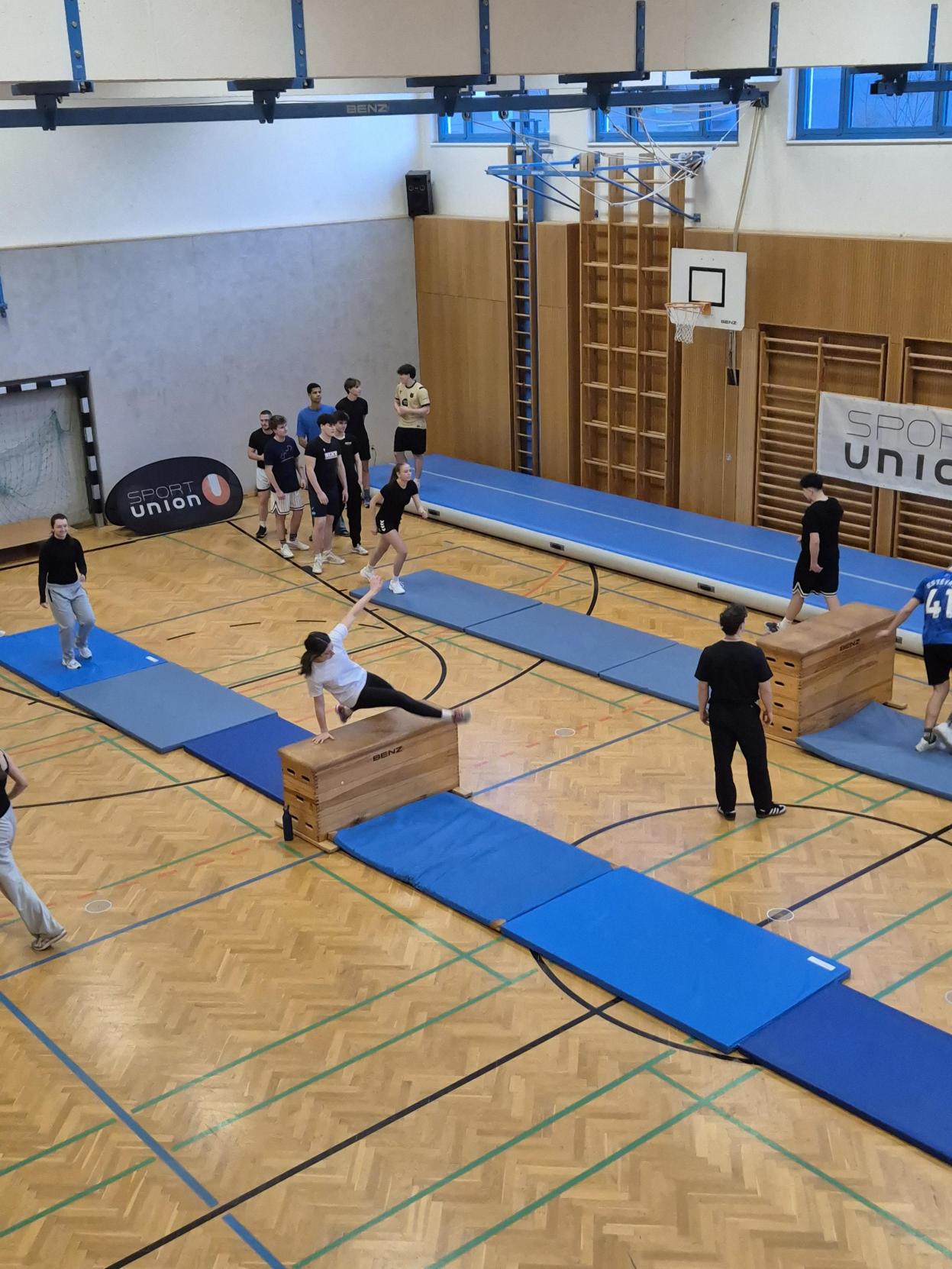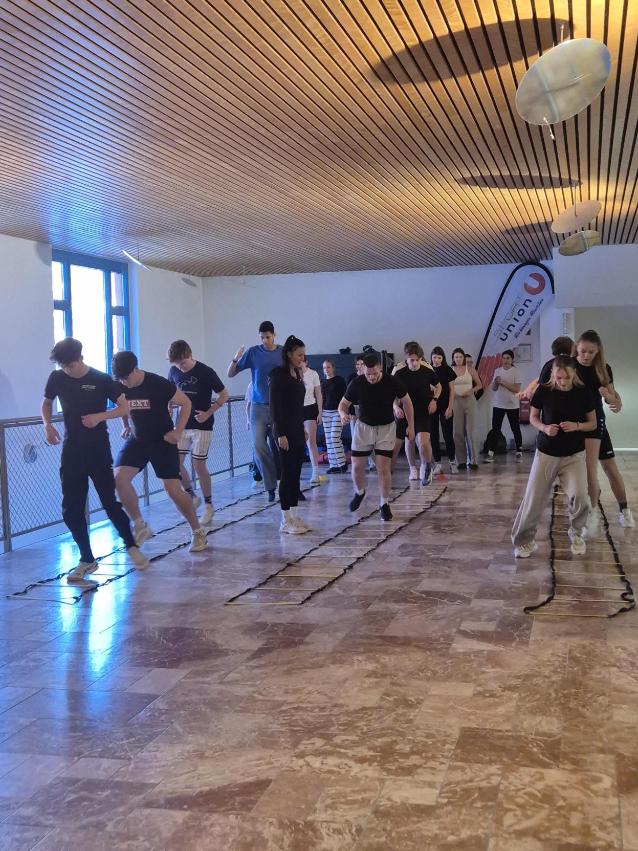 Letzte Woche fand das Kick-Off  Event zur Übungsleiterausbildung der Sportunion mit SchülerInnen der 4DHW, des KORG Innsbruck, des BRG Innsbruck, der HAK Innsbruck, des BORG Schwaz und des Skigymnasiums Stams hier an der HLWest Innsbruck statt. Die motivierten SchülerInnen konnten zum Auftakt an drei Workshops (Parkour, Koordination, Ernährung) teilnehmen. Hier sind einige Impressionen dieses aktiven Nachmittags.