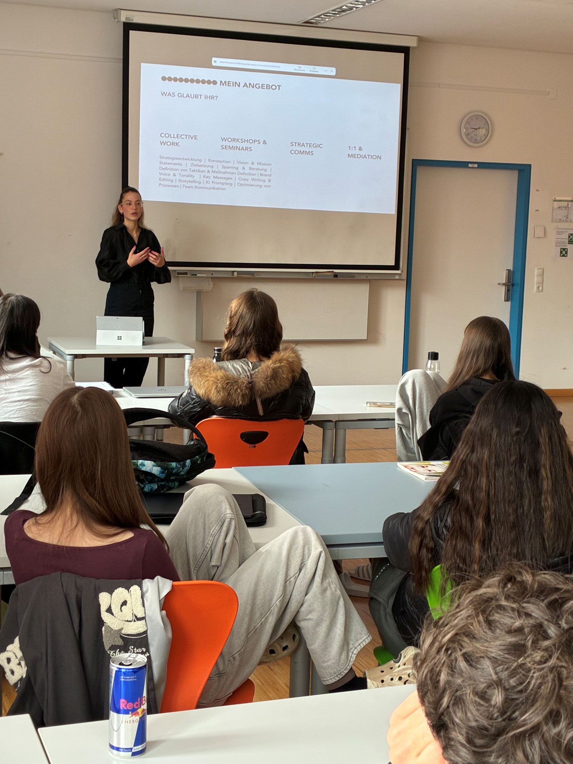 Die 2CHW der Vertiefung Businesswelten durfte Unternehmerin Lena Sponring im BWPM-Unterricht begrüßen.